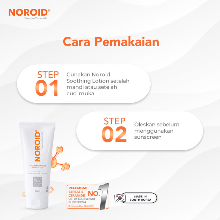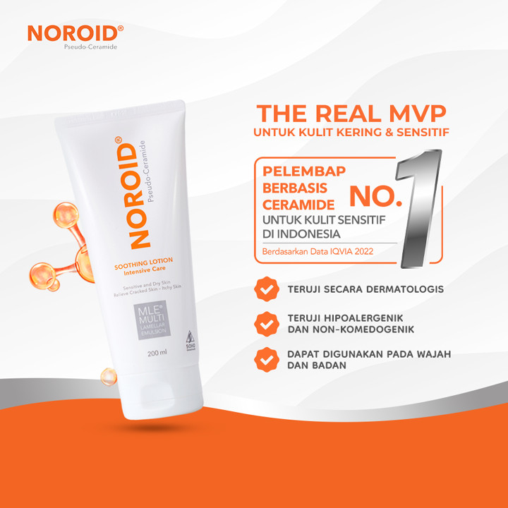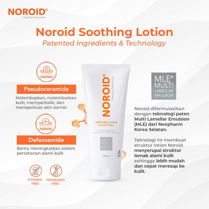 Noroid Soothing Lotion adalah pelembab multifungsi dengan teknologi MLE dan kandungan Ceramides yang dirancang untuk memperbaiki skin barrier pada kulit kering hingga sensitif, termasuk bayi. Produk ini menawarkan fleksibilitas penggunaan di seluruh tubuh dan wajah dengan tekstur yang ringan namun efektif mengurangi gatal dan kemerahan. Dengan harga Rp 206.123 untuk ukuran 200ml, produk ini menjadi pilihan ekonomis bagi yang mencari perawatan intensif tanpa wangi sintetis.