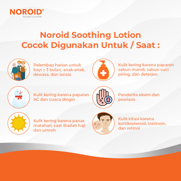 Suka banget,udah 2x order yang 200ml karna alhamdulillah masyaAllah bagus, kulit baby ku tuh kering suka bruntusan kecilβ merah, pakek Noroid rutin dari umur 2 bulan cocok , akhirnya aku terusin . Aku juga pakai. Emang cukup pricey tapi worth it . Bisa dipakai di muka dan badan ( seluruh ) Packingnga juga pol bagus, bubblewrap tebel , kardus . Pengirimannya juga cepet. Seringβ promo yaa β€οΈ