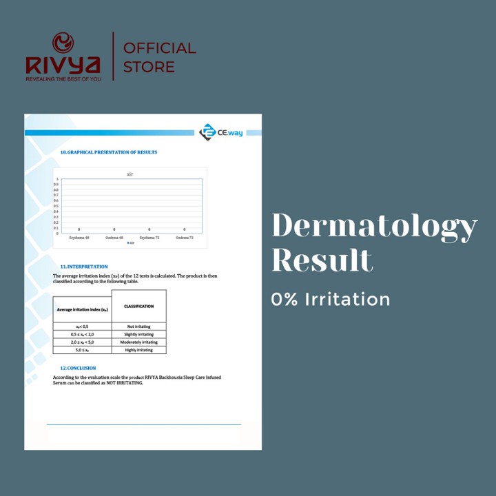 Setelah saya memakai selama beberapa hari tidak ada iritasi yg muncul padahal kulit wajah saya kategori kulit sensitif. Saya sangat suka dengan serum ini,sangat membantu merawat kulit saya Kulit saya menjadi halus dan terlihat lebih cerah. Terimakasih RIVYA next pasti order lagi