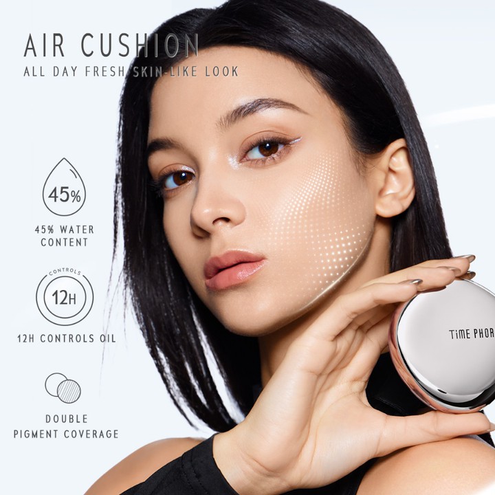 TIME PHORIA Timeless Lumina Matte Perfection Cushion menawarkan perlindungan penuh (full coverage) dengan hasil akhir matte yang tahan lama terhadap air dan keringat. Produk ini sangat populer di Indonesia dengan rating tinggi dan lebih dari 100.000 terjual, menawarkan tekstur ringan yang tidak terasa berat di kulit.