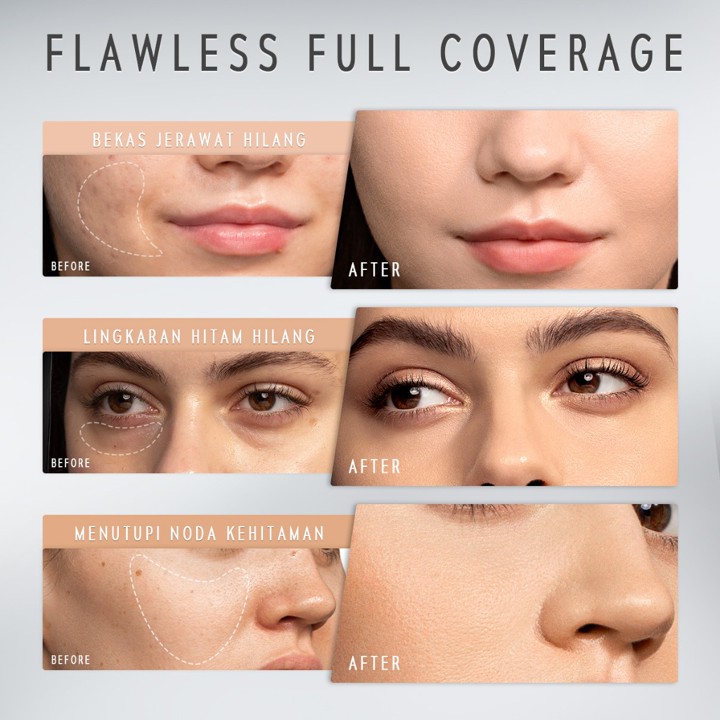 Produk ini unggul dalam teknologi pigmen ganda dan filming yang memaksimalkan daya tahan makeup hingga 36 bulan tanpa cepat oksidasi pada sebagian besar pengguna. Full coverage yang ditawarkan mampu menutup noda dengan baik, sementara formulasi waterproof membuatnya cocok untuk aktivitas sehari-hari yang aktif di iklim tropis.