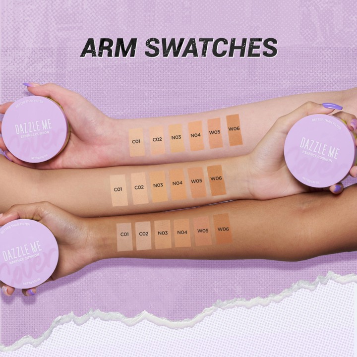 DAZZLE ME Better Than Filter Maxnificent Essence Cushion menawarkan high coverage dan finish seperti filter dengan daya tahan hingga 12 jam, cocok untuk semua jenis kulit. Dengan harga terjangkau dan komposisi Niacinamide, produk ini menjadi pilihan cerdas untuk mencapai tampilan wajah flawless secara natural.