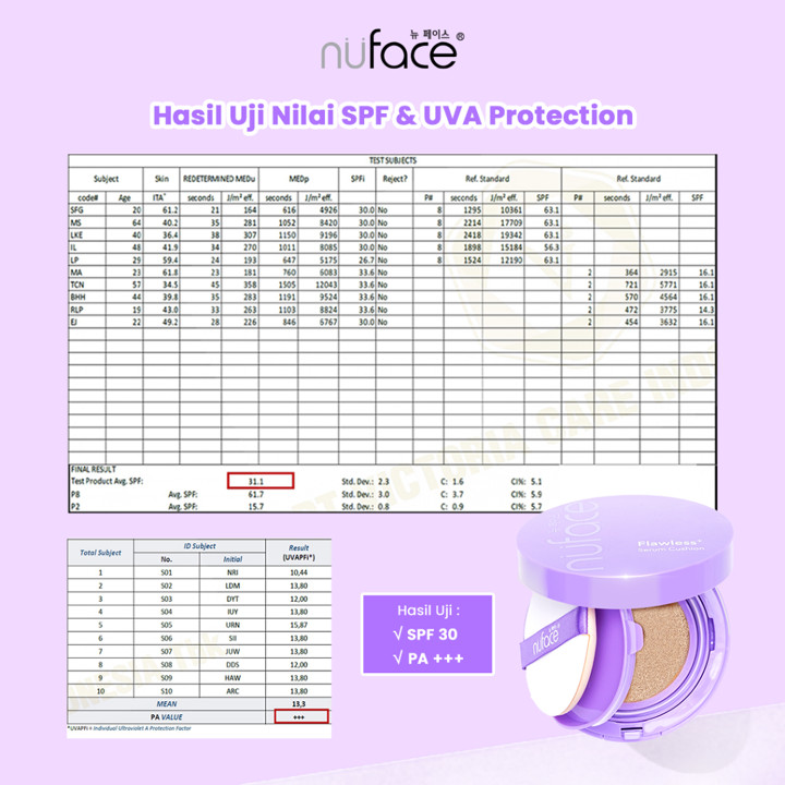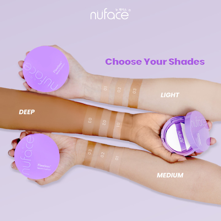 Nuface Flawless+ Serum Cushion menghadirkan pengalaman makeup 'next level' dengan formula yang menggabungkan fungsi foundation dan skincare. Produk ini menawarkan coverage yang dapat disesuaikan (buildable) dari medium hingga tinggi, mampu menyamarkan noda dengan hasil akhir yang flawless dan berkilau alami (dewy finish). Formulanya diperkaya dengan serum yang menutrisi kulit, membuatnya terasa ringan dan mudah diaplikasikan tanpa meninggalkan rasa berat atau sumbatan pori-pori.