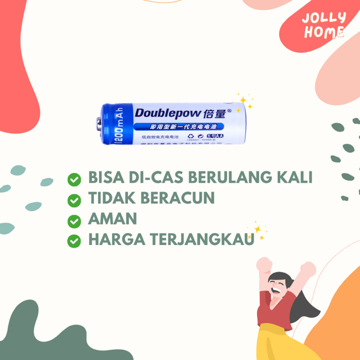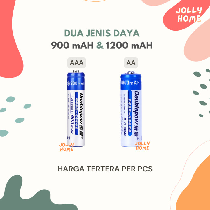Baterai Doublepow NiMH ini menawarkan solusi hemat dengan kemampuan isi ulang hingga ribuan siklus, tersedia dalam kapasitas AA 1200mAh dan AAA 900mAh. Dengan harga sangat terjangkau di bawah Rp 6.000 per pcs, produk ini ideal untuk perangkat elektronik rumah tangga yang membutuhkan daya tahan baterai lebih lama.