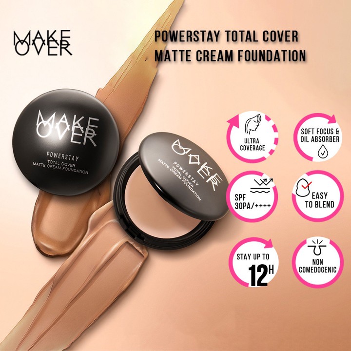 MAKE OVER Powerstay Total Cover Matte Cream Foundation adalah solusi makeup untuk menutupi ketidaksempurnaan kulit dengan coverage tinggi dan tahan lama hingga 12 jam. Dilengkapi perlindungan SPF 30 PA++++ dan tekstur creamy yang mudah dibaurkan, produk ini menawarkan perlindungan dari sinar matahari sekaligus memperbaiki tampilan wajah. Dengan harga yang terjangkau dan rating tinggi, foundation ini menjadi pilihan populer bagi yang mencari hasil maksimal tanpa rasa berat di kulit.