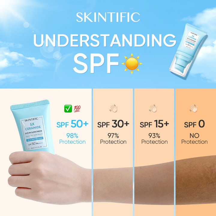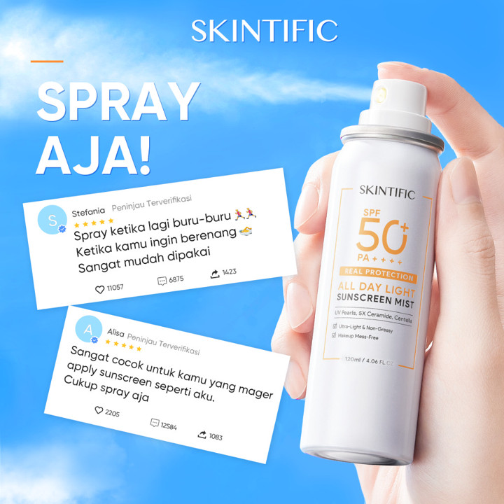 Sunscreen harian SKINTIFIC dengan perlindungan SPF50 PA++++ yang diformulasikan khusus untuk mengatasi masalah kulit seperti <strong title="Noda Hitam/Hiperpegmentasi">hiperpigmentasi</strong>, bekas jerawat, dan menjaga <strong title="skin barrier">skin barrier</strong>. Dengan tekstur matte dan hasil akhir yang ringan, produk ini ideal untuk penggunaan sehari-hari di iklim tropis Indonesia.