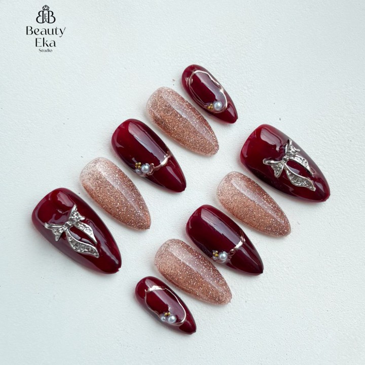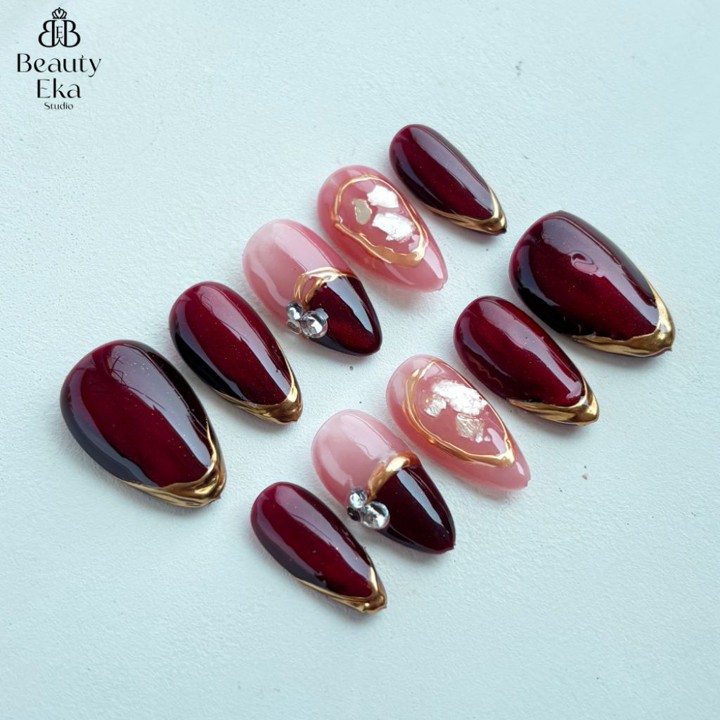 Terbuat dari material Soft Tip Premium dengan pilihan bentuk Short Almond, Short Oval, dan Medium Almond yang dapat dikustomisasi melalui chat. Kelengkapan kit termasuk lem tempel, lem cair, alcohol pads, kikir mini, dan pendorong kutikula memudahkan pengguna untuk aplikasi sendiri di rumah tanpa alat tambahan yang rumit.