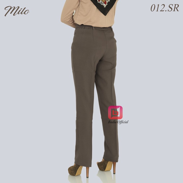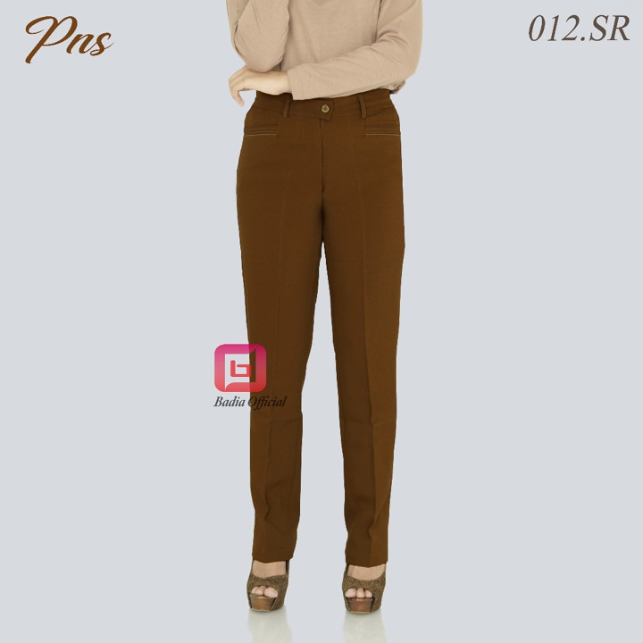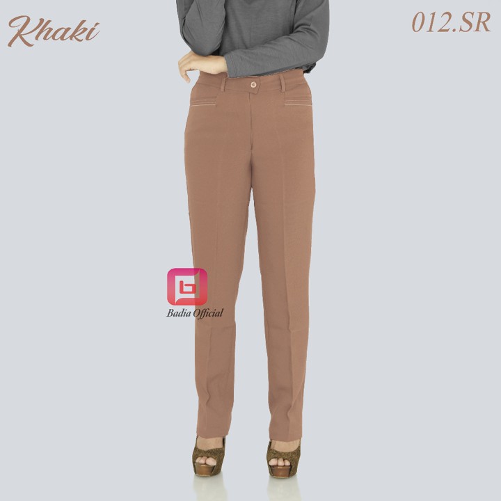 Desain celana ini mengusung gaya basic formal dengan potongan straight (lurus) yang cocok untuk acara kerja, tersedia dalam warna polos seperti hitam pekat dan coklat. Fitur pinggang kancing karet samping menjadi nilai tambah utama yang memberikan fleksibilitas ukuran, memungkinkan pengguna dengan lingkar pinggang atau paha besar untuk tetap nyaman tanpa perlu menyesuaikan ukuran yang terlalu ketat.