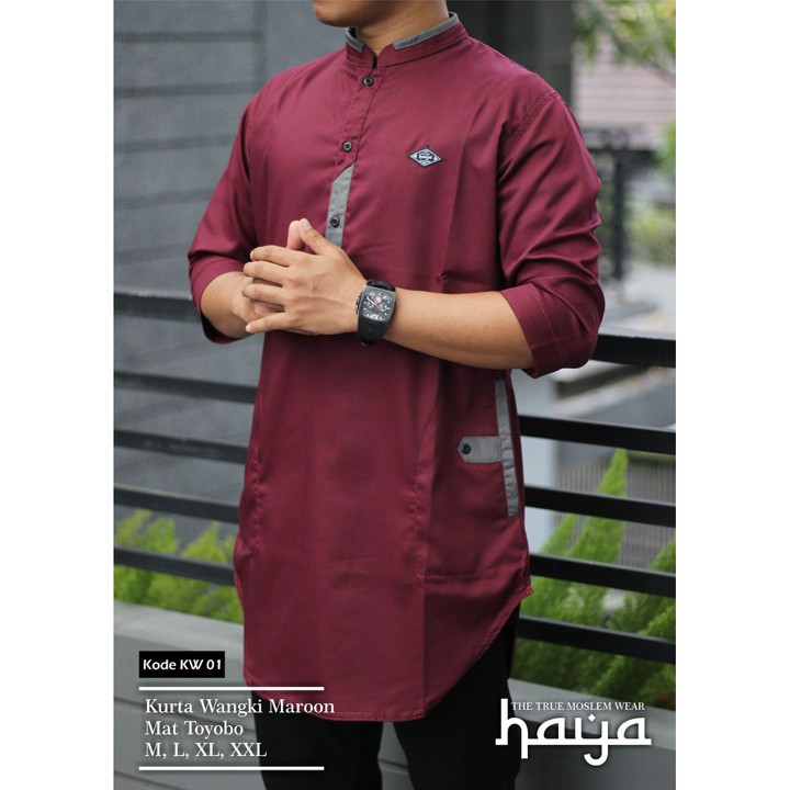 Desainnya mengusung gaya slim fit dengan panjang lengan 3/4 dan kerah band yang memberikan kesan modern dan modis, menjauh dari kesan kaku pada baju koko tradisional. Tersedia dalam berbagai ukuran mulai dari M hingga Jumbo (XXL) dengan lebar dada hingga 58 cm, serta pilihan warna polos seperti mocca dan maroon yang elegan dan mudah dipadukan dengan berbagai gaya.