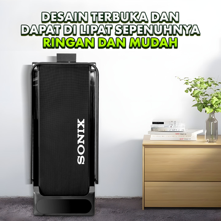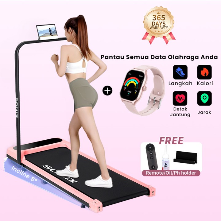 Sonix Incline Treadmill STR01 adalah treadmill listrik lipat hemat ruang dengan desain modern dan fitur remote control yang cocok untuk latihan intensitas ringan hingga sedang di rumah. Dengan kapasitas beban hingga 120kg dan kecepatan maksimal 10km/jam, produk ini menawarkan solusi fitness praktis dengan harga yang sangat kompetitif di pasar Indonesia.
