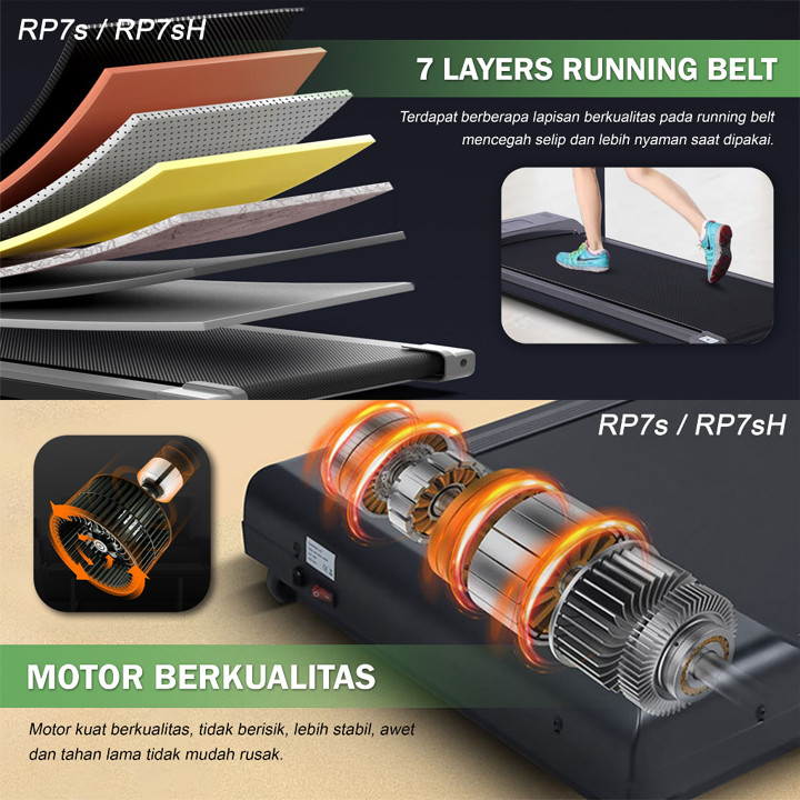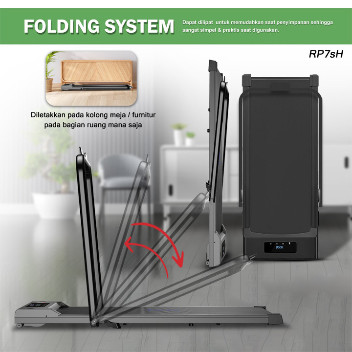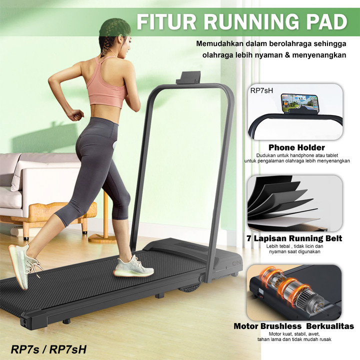 Produk ini menonjolkan fitur utama sebagai treadmill listrik yang dirancang untuk aktivitas kardio indoor seperti berjalan (walking pad) dan berlari ringan. Keunggulan utamanya adalah konsep portabilitas yang ditunjang desain lipat, menjadikannya ideal untuk ruang terbatas. Selain itu, adanya garansi part elektro 2 tahun (meskipun garansi utama tertulis 'Tidak Garansi') memberikan lapisan kepercayaan ekstra pada komponen mesin vital.