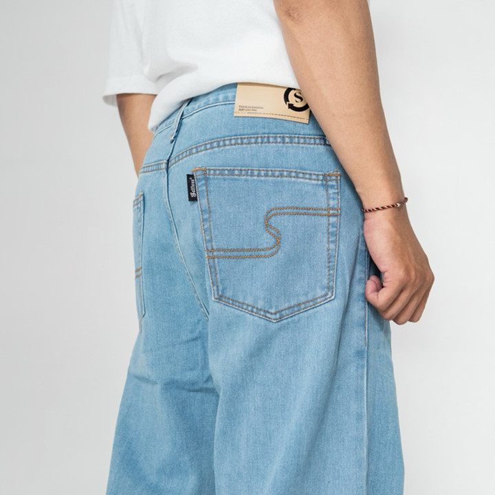 Pria atau wanita muda (Gen Z/Millennial) yang aktif, menyukai gaya kasual santai (streetwear/vintage), dan mencari celana jeans dengan potongan longgar yang nyaman untuk aktivitas harian tanpa mengorbankan estetika.