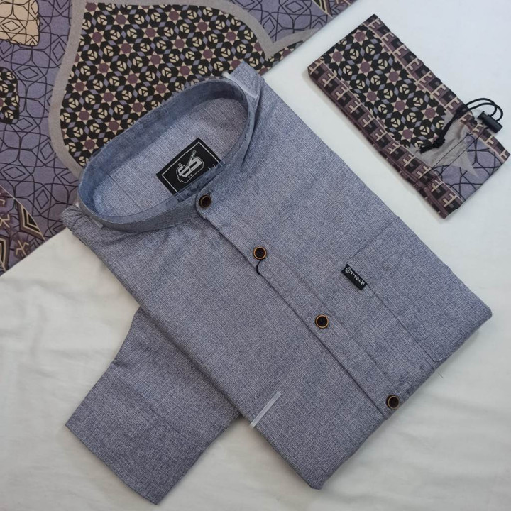 Produk ini menggunakan bahan Katun Madinah Premium (varian Toyobo) yang dikenal memiliki tekstur halus, lembut, dan sangat adem saat dikenakan. Konstruksinya dikerjakan dengan jahitan rapi dan detail seperti ujung lengan berkancing serta saku depan kiri, menjamin kualitas yang solid untuk penggunaan sehari-hari.