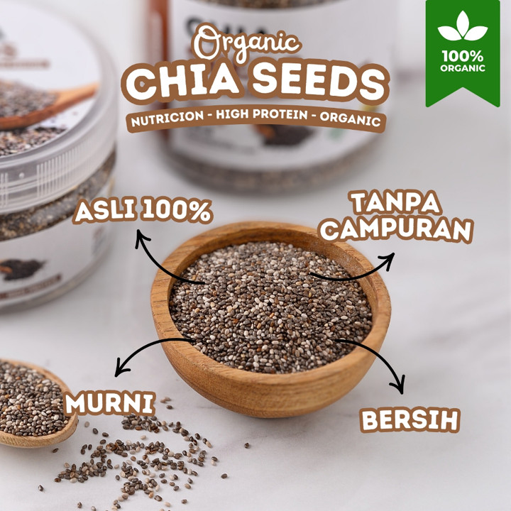 Chia Seeds Organic Premium ini adalah sumber nutrisi super dengan klaim 100% murni, non-GMO, dan berkualitas Grade A. Cocok untuk meningkatkan asupan serat, protein, dan asam amino harian Anda. Disediakan dalam kemasan toples foodgrade yang aman dan premium.