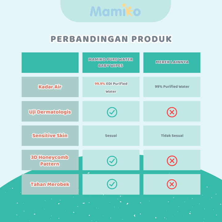 Saya suka dengan tisu basah mamiko yang warna biru. Karena kandungan air nya banyak. Tidak ada alkohol. Jadi cocok untuk kulit bayi
