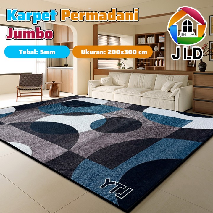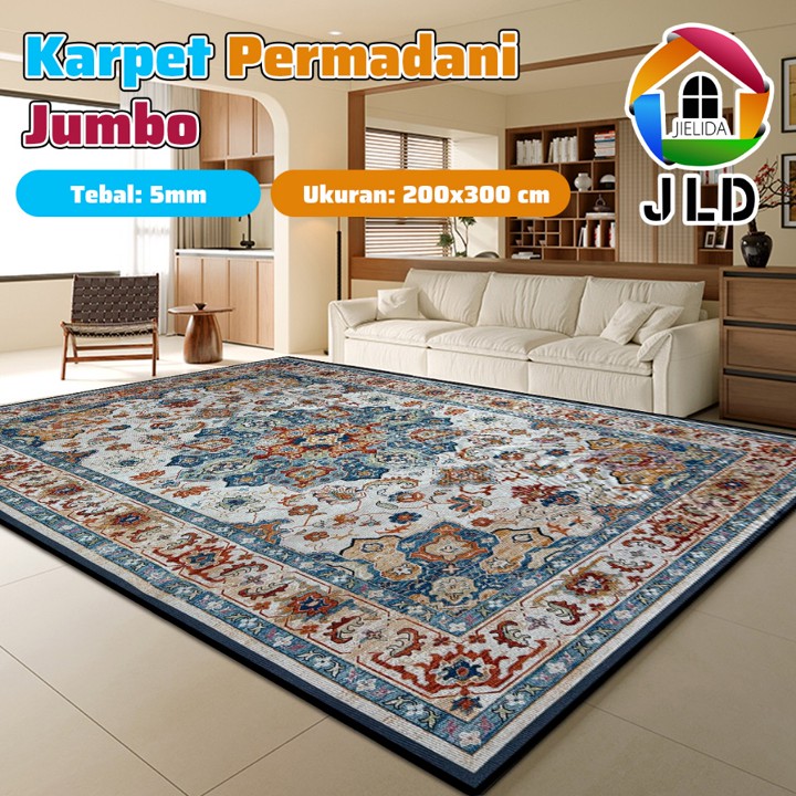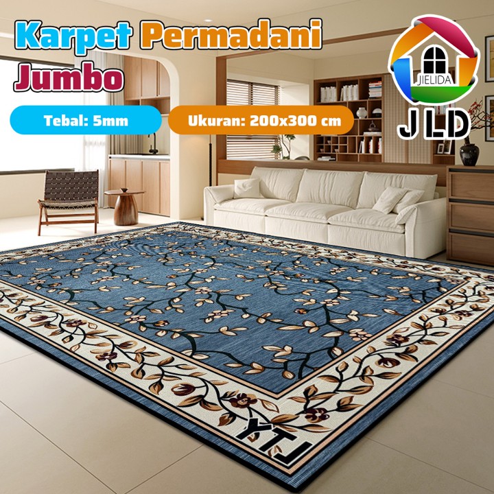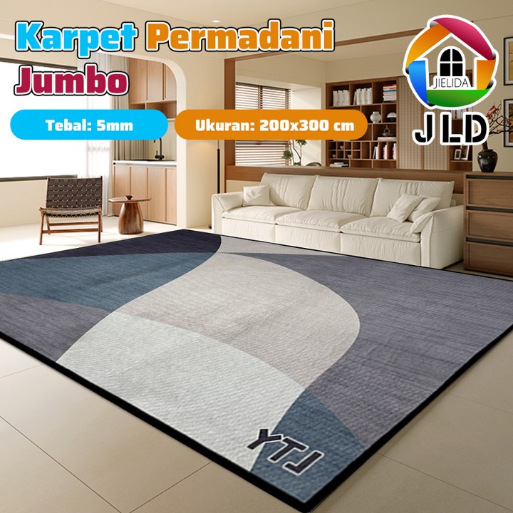 Karpet JieLiDa ukuran jumbo 200x300cm ini hadir dengan desain motif Eropa modern yang estetik, cocok untuk mempercantik ruang tamu atau kamar tidur. Dilengkapi fitur anti slip di bagian bawah, produk ini menawarkan keamanan dan kenyamanan sekaligus sebagai dekorasi interior yang fungsional.