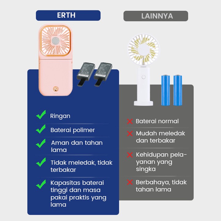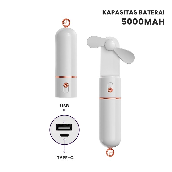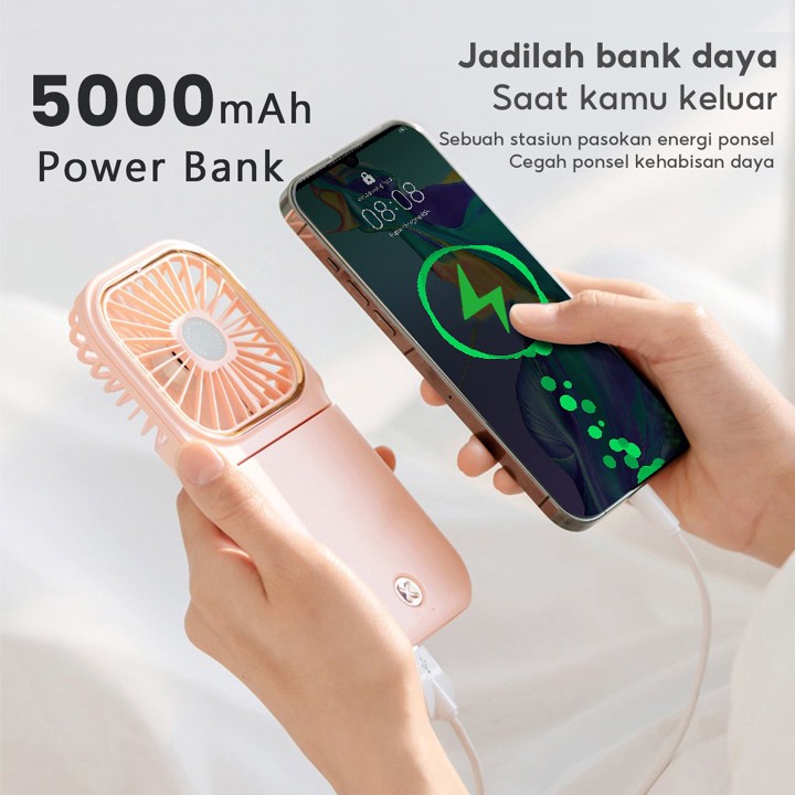 Fitur utama produk ini sangat komprehensif karena menggabungkan fungsi kipas angin, dudukan ponsel, dan daya cadangan melalui powerbank 5000mAh. Keunggulan utama terletak pada portabilitas dan daya tahan baterai yang diklaim 'tahan lama', menjadikannya solusi pendingin yang mandiri tanpa perlu colok listrik konstan.