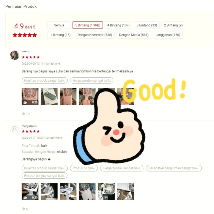 Berdasarkan ulasan, pembeli sangat memuji desain unik dan fungsi pendinginan yang efektif. Namun, terdapat catatan penting mengenai potensi ketidaksesuaian warna pesanan dan isu performa baterai yang perlu diwaspadai. Calon pembeli disarankan untuk memperhatikan kebijakan pengembalian barang dan memastikan pemahaman tentang kapasitas baterai saat digunakan secara simultan.