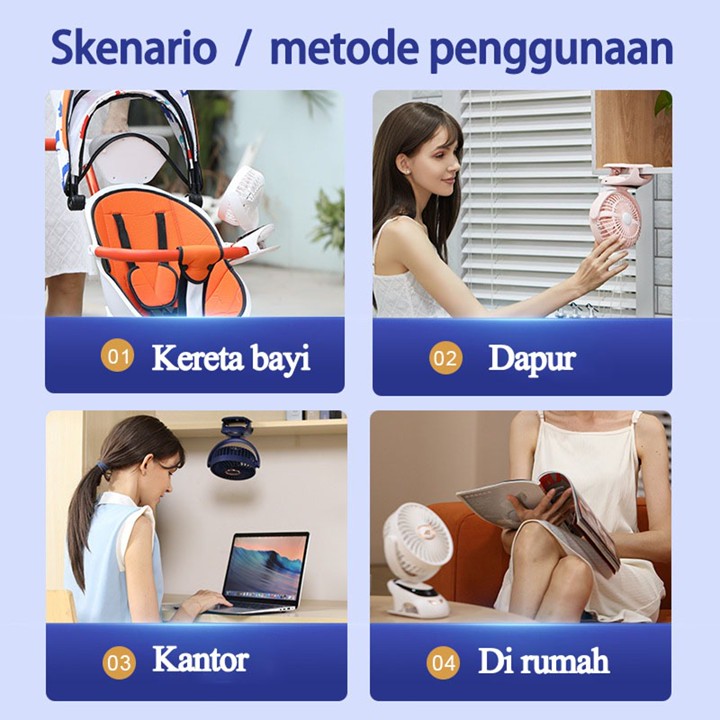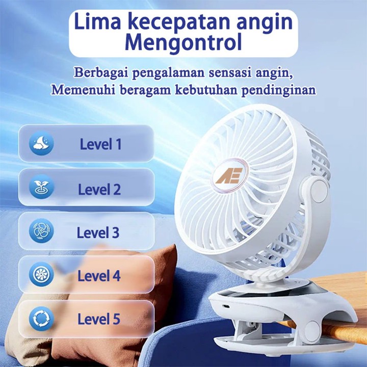 Sangat nyaman digunakan dan dapat dijepit dimana saja diperlukan. Dapat dijepitkan ke bayi atau di boks bayi dan kereta dorong bayi. Juga nyaman untuk keluar. Kecepatan angin dapat diatur dalam lima level, dan dapat bertahan lama dengan sekali pengisian daya. Kipas kecil ini cukup bagus.