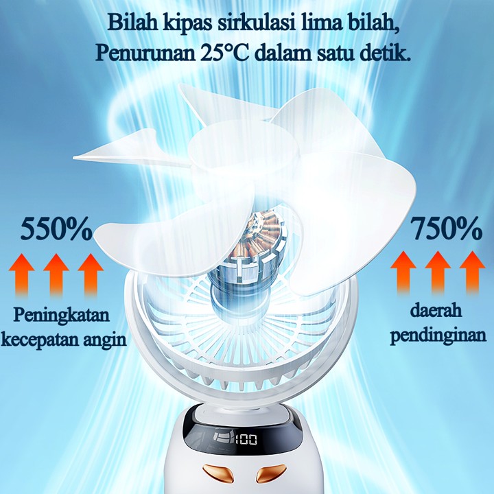 Kipas angin portable multifungsi dengan kapasitas baterai besar (30000mAh) yang ideal untuk kebutuhan pendinginan di berbagai aktivitas. Dilengkapi fitur tambahan seperti aromaterapi dan lampu LED, menjadikannya solusi pendingin serbaguna untuk rumah maupun bepergian.