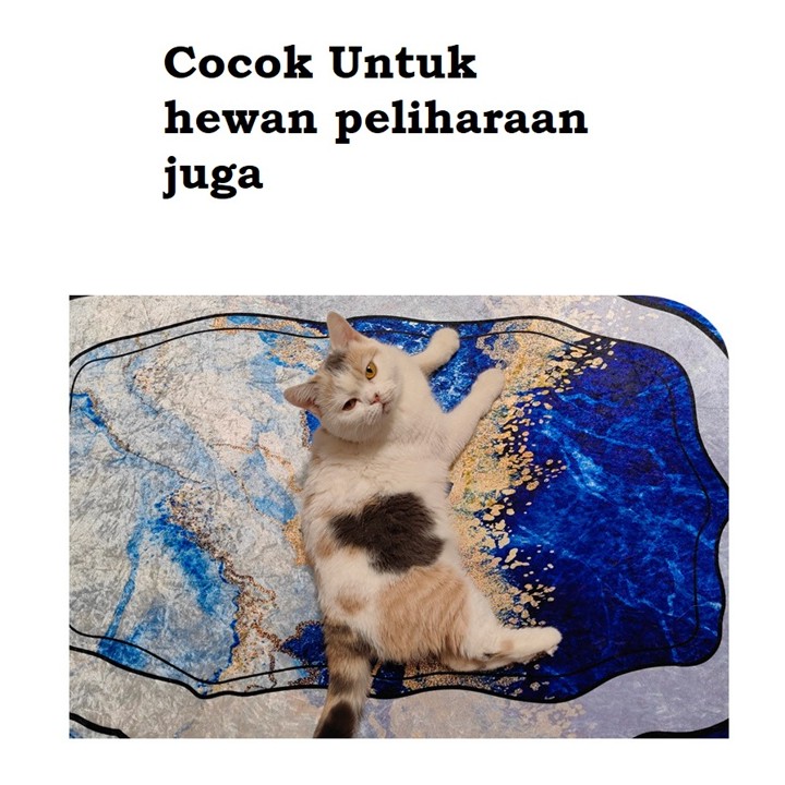 Cantik bgt karpet nya, warna nya cocok buat di ruang tamu ku. Bawah nya juga anti slip jadi ga gampang geserππ»π