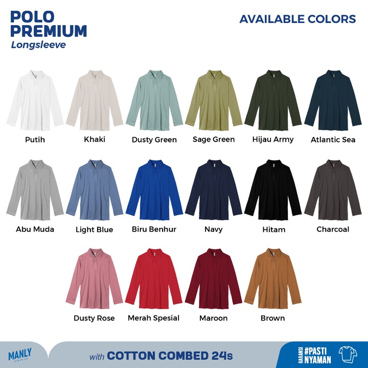 Kaos Polo Lengan Panjang Premium ini menawarkan kenyamanan maksimal berkat penggunaan bahan <strong class="highlight">100% Full Cotton Combed 24s</strong> dengan gramasi ideal 190-200 gr/m. Cocok untuk kebutuhan gaya kasual sehari-hari yang menuntut kenyamanan superior tanpa mengorbankan penampilan profesional. Dengan rating tinggi dan penjualan yang solid, produk ini menjadi pilihan andalan untuk pakaian harian pria.