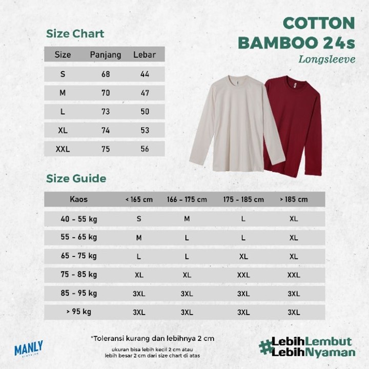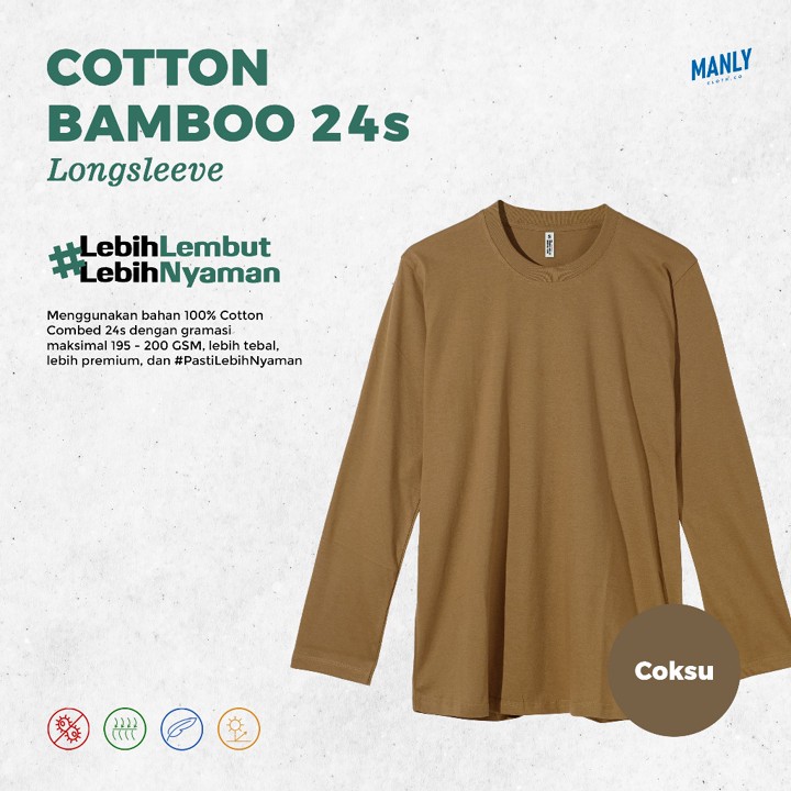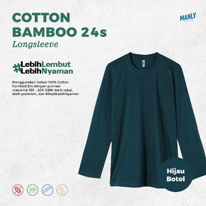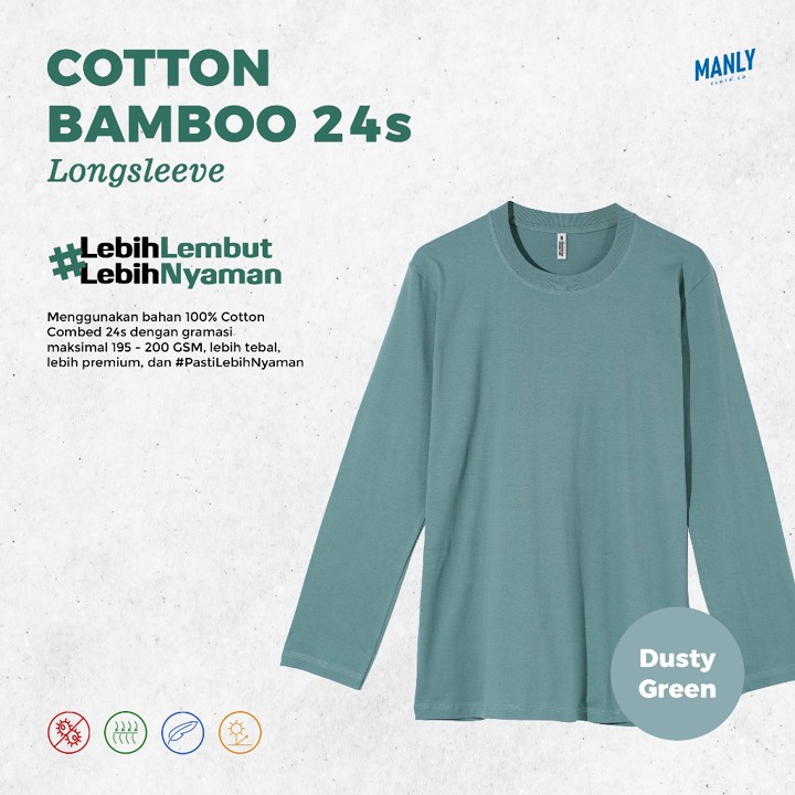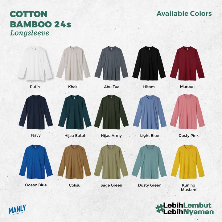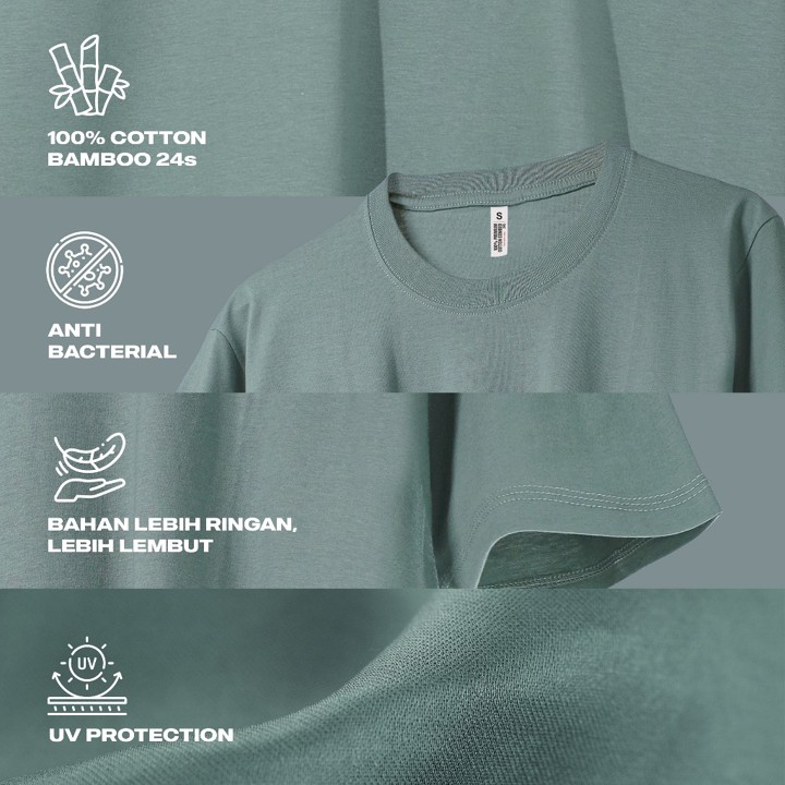 Produk ini menggunakan bahan Cotton Bamboo 24S yang merupakan inovasi material lokal dengan sentuhan teknologi anti-bakteri, memberikan tekstur yang jauh lebih lembut dan adem dibandingkan katun biasa. Konstruksi kainnya dikenal tebal namun tetap fleksibel, mampu menahan panas tubuh dan mencegah bau tidak sedap selama seharian pemakaian, serta memiliki daya serap keringat yang superior untuk menjaga stabilitas mood pengguna di cuaca apapun.