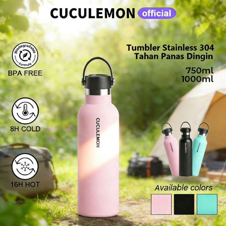 Termos stainless steel CucuLemon menawarkan solusi hidrasi premium dengan klaim isolasi suhu superior (panas hingga 8 jam, dingin hingga 16 jam). Dengan pilihan desain motif yang beragam dan kapasitas fleksibel (750ml/1000ml), botol ini sangat cocok untuk aktivitas harian maupun olahraga.
