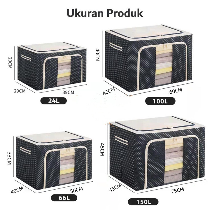 Kualitas produk secara umum dinilai sangat baik oleh mayoritas pembeli, dengan fitur utama berupa kerangka baja yang memberikan kekuatan ekstra dan desain double zipper yang memudahkan akses. Box ini mampu menampung volume besar seperti 4 handuk tebal atau berbagai pakaian lipat dengan rapi, menjadikannya organizer multifungsi yang efektif untuk kamar tidur atau ruang bermain anak.