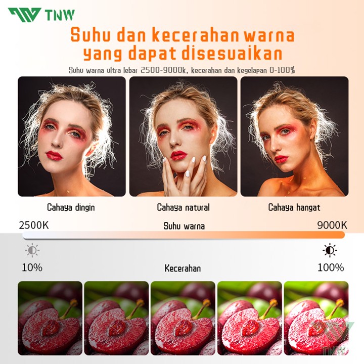 Produk ini menawarkan fitur pencahayaan yang sangat lengkap dengan 72 LED beads dan kapabilitas penyesuaian yang superior, mencakup 3 mode pencahayaan serta rentang suhu warna (3000K hingga 9900K) dan 10 tingkat kecerahan. Fleksibilitas ini menjamin pengguna dapat menyesuaikan output cahaya secara presisi, baik untuk kebutuhan estetika foto maupun fungsionalitas penerangan umum.