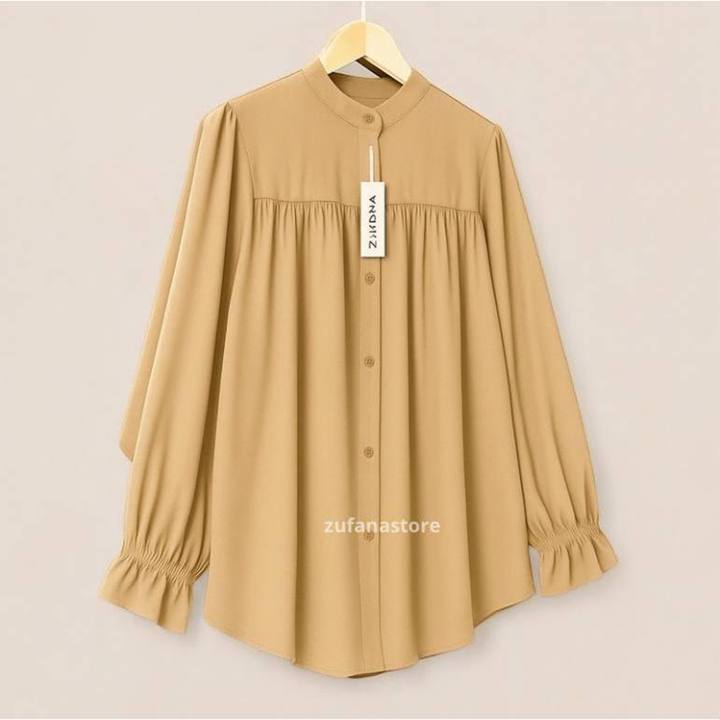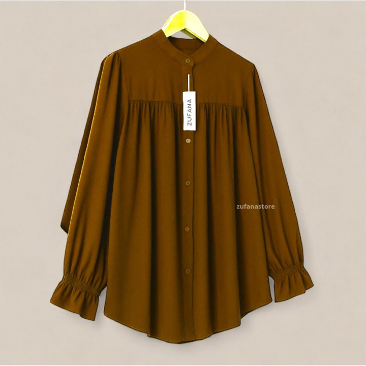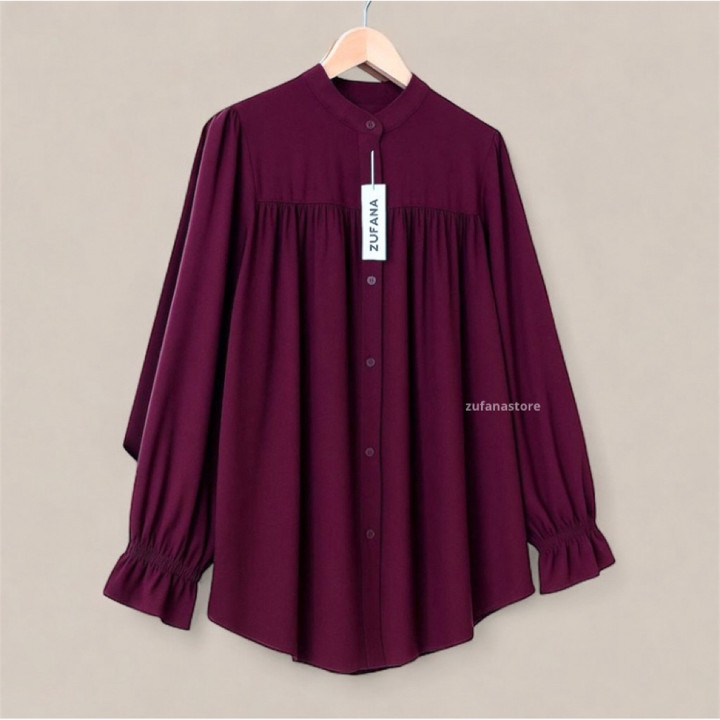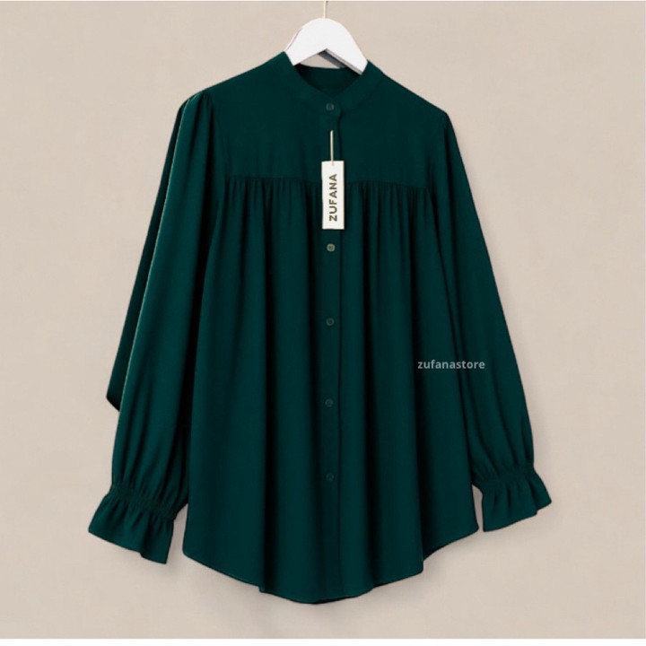 Produk ini menonjolkan kualitas jahitan yang rapi dan desain model Shanghai yang memberikan kesan elegan namun tetap simpel. Fitur kancing depan pada bagian dada memudahkan penggunaan, menjadikannya pilihan praktis untuk ibu menyusui atau mereka yang menyukai aksesibilitas pakaian. Gaya oversize memastikan kenyamanan maksimal tanpa membatasi gerakan tubuh.