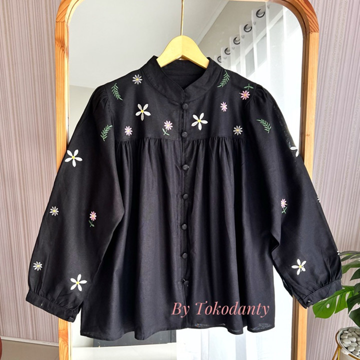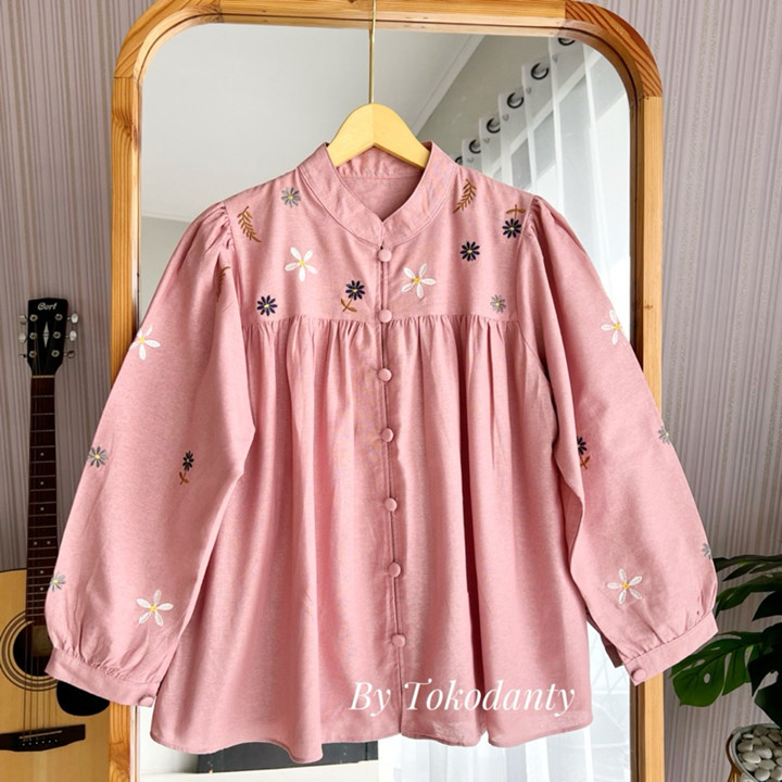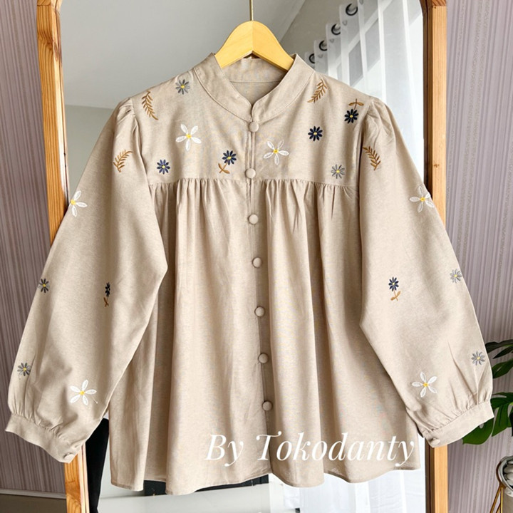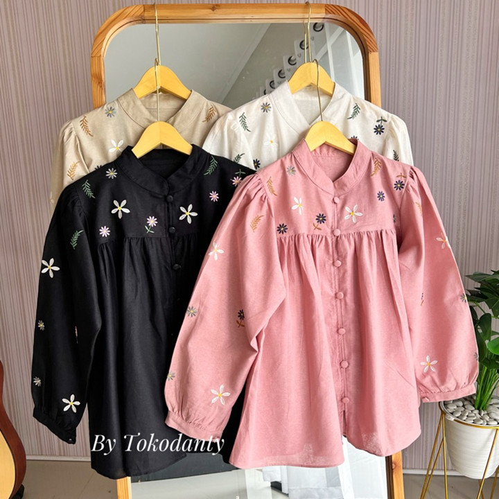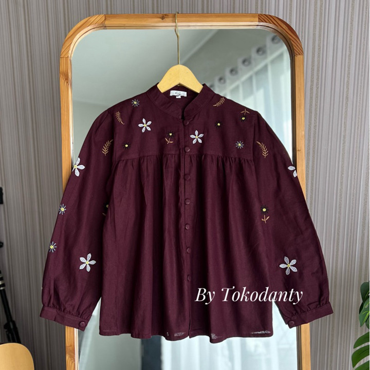 Kemeja Sabine menawarkan desain yang anggun dengan detail bordir bunga yang manis dan kerah sanghai, memberikan kesan feminin namun tetap profesional. Fitur unik seperti kancing bungkus di lengan dan konstruksi yang memudahkan aktivitas wudhu serta menyusui menjadikannya pilihan praktis bagi wanita modern yang mengutamakan fungsionalitas tanpa mengorbankan gaya.