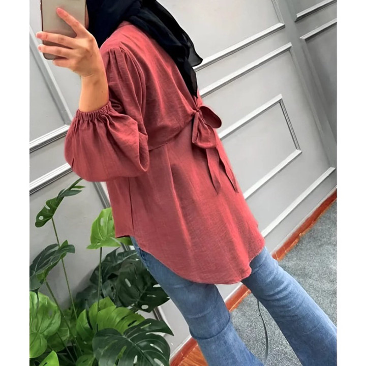 Blouse Polo Linen Vivian ini menawarkan perpaduan gaya Korean kasual dengan sentuhan elegan melalui detail tali pita belakang dan kerah kemeja. Dibuat dari bahan linen yang adem, blouse ini sangat cocok untuk aktivitas sehari-hari namun tetap terlihat rapi dan stylish.