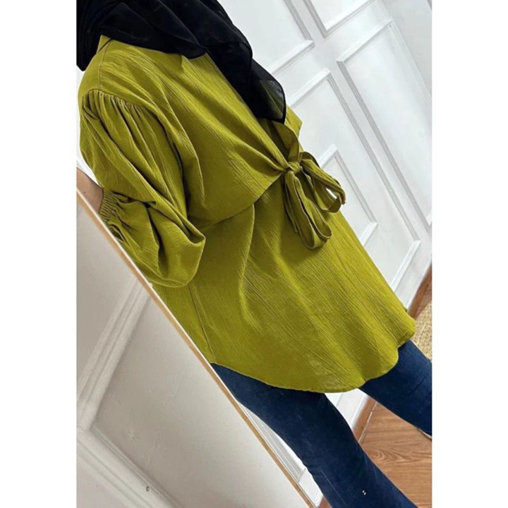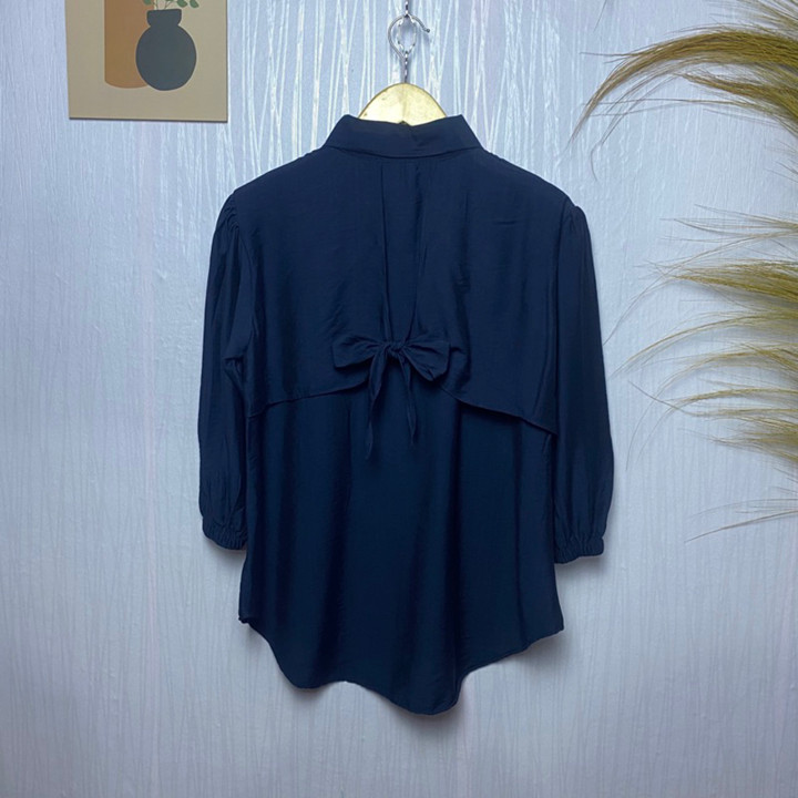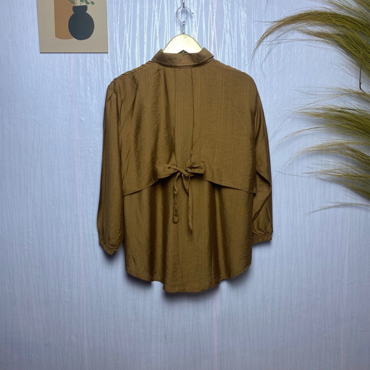 Secara fitur, produk ini menonjolkan desain Polo Linen dengan detail tali pita belakang dan kancing full (busui), menjadikannya sangat fungsional dan mengikuti tren gaya Korea. Kehadiran kerah kemeja (Collar) memberikan kesan semi-formal yang dapat disesuaikan untuk berbagai acara kasual.