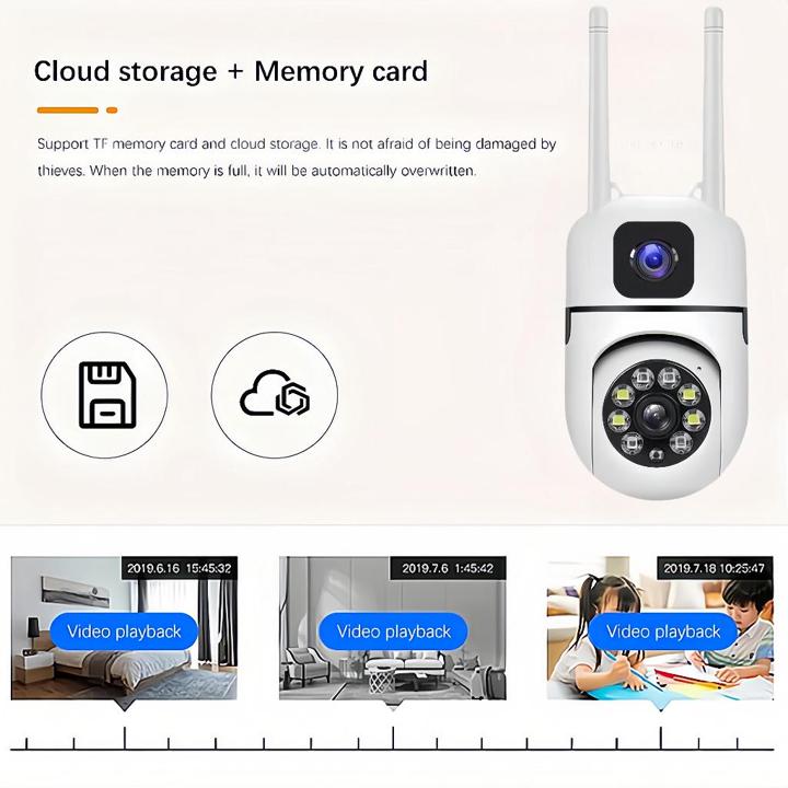 Secara teknis, produk ini menonjol dengan konfigurasi Dual Lens Camera yang masing-masing memiliki sensor 5MP, memungkinkan perekaman video hingga resolusi 1080P Full HD pada kedua sisi pemantauan. Kehadiran fitur PTZ (Pan-Tilt-Zoom) dengan Optical Zoom 4x dan Digital Zoom 4x, didukung dengan kemampuan bekerja di kondisi cahaya rendah dan fitur Penglihatan Malam Inframerah, memastikan kualitas visual yang stabil siang maupun malam hari.