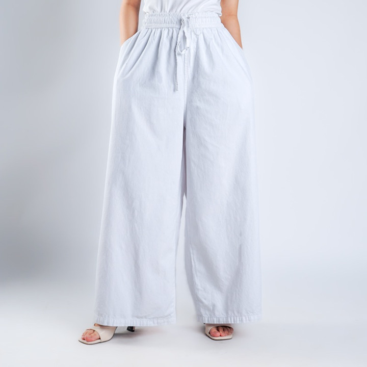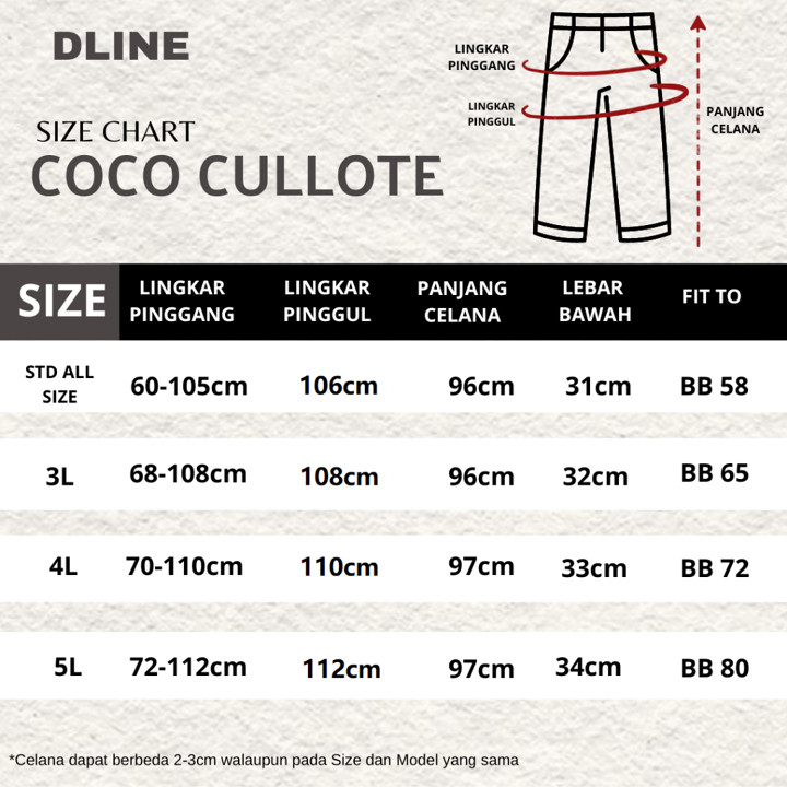 Desain kulot dengan model Coco sangat mengutamakan kenyamanan pinggang berkat pinggang karet elastis yang dapat disesuaikan melalui tali serut, memberikan opsi *clean look* yang fleksibel. Meskipun disebut gaya *basic*, penekanan pada *high waist* dan potongan longgar membuatnya sangat serbaguna untuk berbagai aktivitas kasual.