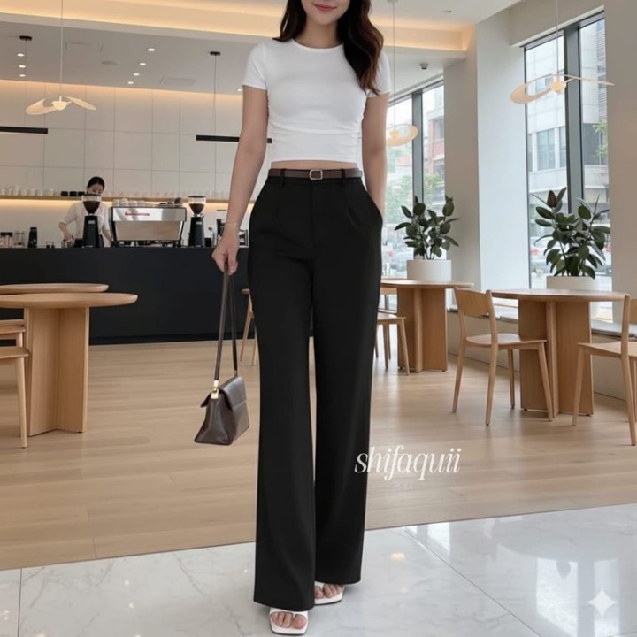 Produk ini menonjolkan desain wide leg yang elegan dan tidak membuat terlihat bulky, memberikan kesan ramping dan tinggi pada pemakainya. Dengan gaya basic Korea yang timeless, celana ini sangat fleksibel untuk acara kasual sehari-hari maupun tampilan yang lebih rapi. Potongan high waist-nya dirancang untuk menonjolkan pinggang dan memberikan proporsi tubuh yang ideal bagi berbagai jenis tubuh, termasuk ukuran jumbo.