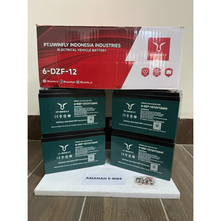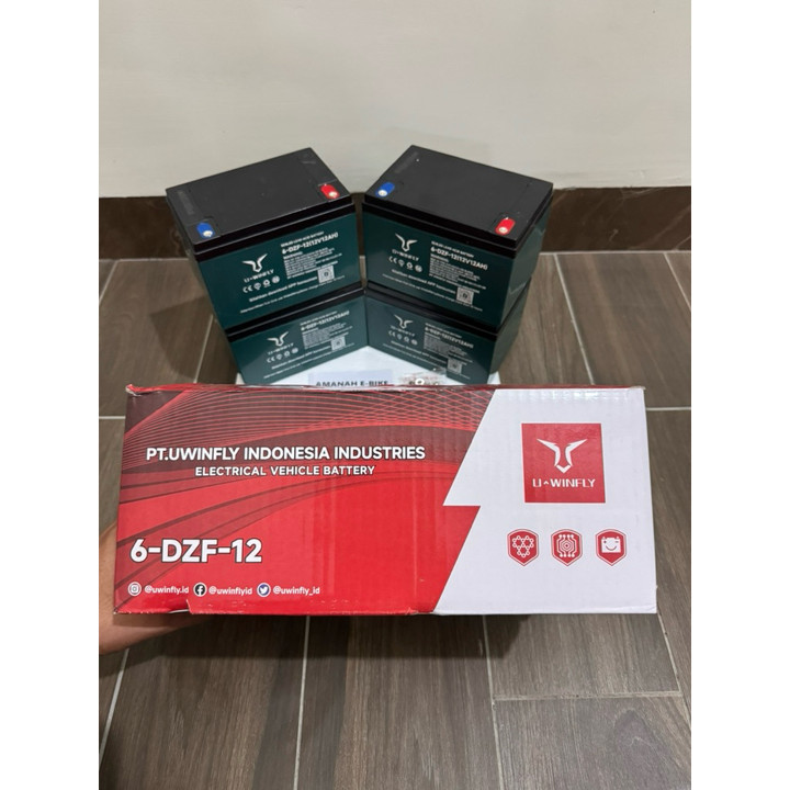 Aki kering Uwinfly 12V/12AH ini adalah pengganti baterai original untuk sepeda listrik dengan garansi resmi 6 bulan. Produk ini menawarkan kinerja stabil dengan dimensi standar yang kompatibel untuk berbagai unit sepeda listrik Uwinfly.