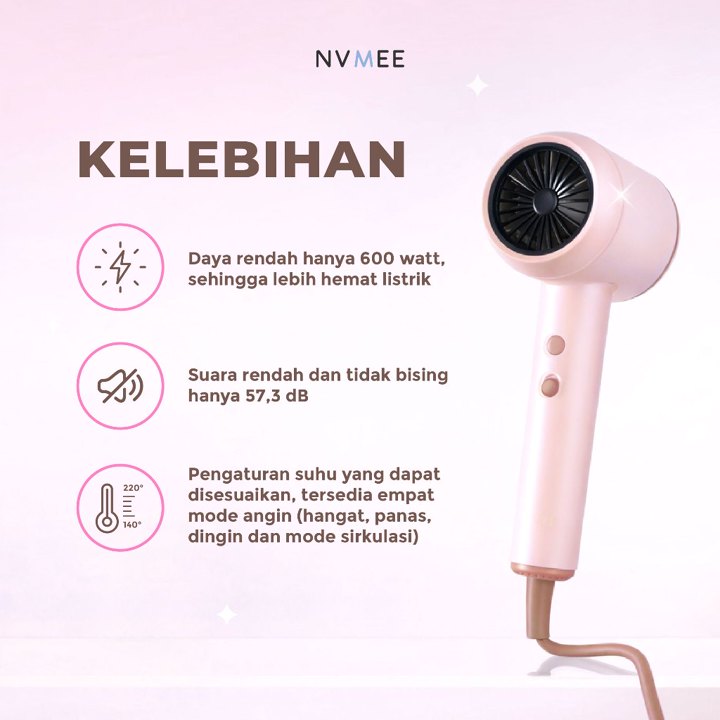 NVMEE Luna Hair Dryer menawarkan kekuatan angin kencang dengan konsumsi daya rendah, cocok untuk pengguna yang mengutamakan efisiensi energi tanpa mengorbankan performa pengeringan. Dengan rating 4.94/5 dan desain yang ramah pemula, alat ini menjadi pilihan menarik bagi mereka yang mencari hair dryer berkualitas dengan harga terjangkau.