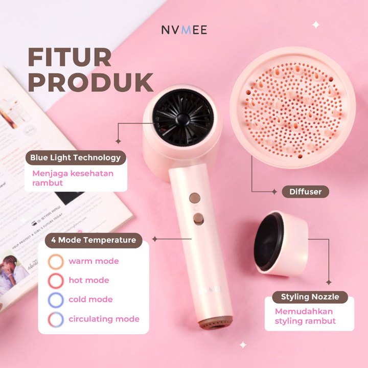 Dibangun dengan material yang ringan sehingga tidak memberatkan pergelangan tangan saat digunakan, produk ini dilengkapi dengan diffuser dan styling nozzle untuk variasi gaya rambut. Kemasan yang rapi dan desain warna yang cantik menjadi nilai tambah visual yang menarik bagi pengguna muda.