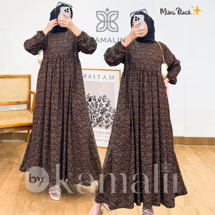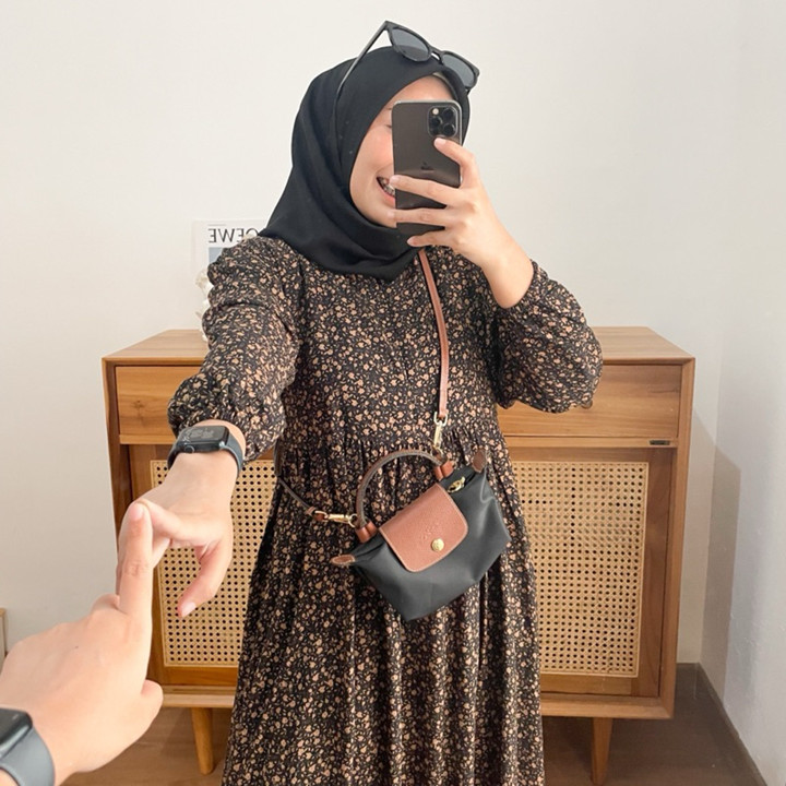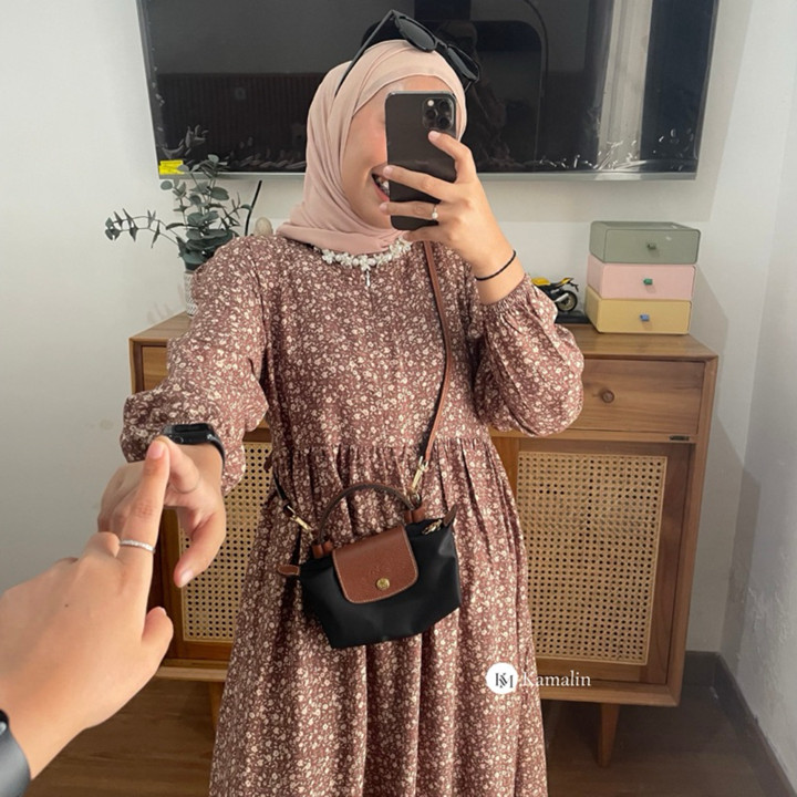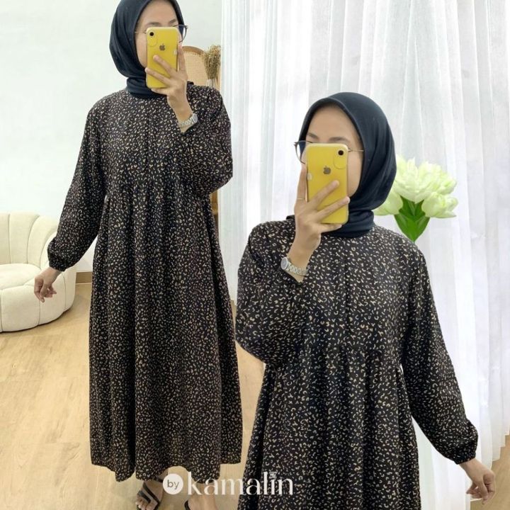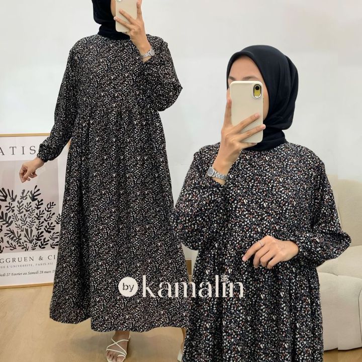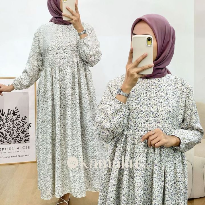 Produk ini menggunakan Rayon Premium yang dikenal dengan tekstur lembut, jatuh, dan kemampuan menyerap keringat yang baik, menjadikannya pilihan ideal untuk iklim tropis Indonesia. Konstruksi dress midi ini dirancang dengan lebar bawah yang sangat luas (mayung 130-140 cm) dan panjang sekitar 125 cm, memberikan kesan anggun tanpa membatasi gerakan. Fitur busui zipper di bagian depan sangat fungsional untuk kemudahan menyusui, ditambah dengan keberadaan saku di sisi kanan yang menambah utilitas pakaian sehari-hari.