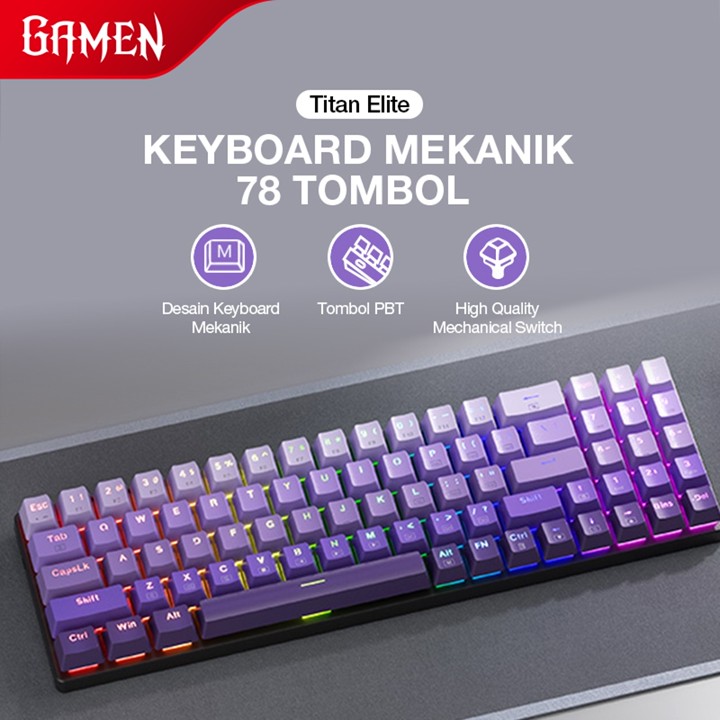 GAMEN Titan Elite Keyboard Mechanical 78 Keys menawarkan pengalaman gaming premium dengan fitur hot-swappable dan RGB yang sangat kaya. Dengan desain ergonomis dan anti-ghosting, keyboard ini menjanjikan performa superior untuk gamer kasual hingga kompetitif.