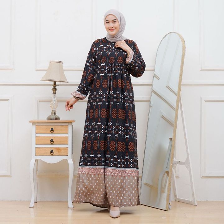 Gamis Rayon Premium Motif Etnik ini menawarkan kombinasi elegan antara bahan rayon yang adem dengan desain etnik yang viral, tersedia dalam ukuran Jumbo hingga lingkar dada 120 cm. Dengan fitur seperti resleting busui friendly, saku aktif, dan tali samping, produk ini menjadi solusi praktis namun tetap modis untuk berbagai acara. Penjual juga memberikan jaminan jahitan rapi dan full obras, serta melayani pembelian mystery box dengan 20 seri warna pilihan.