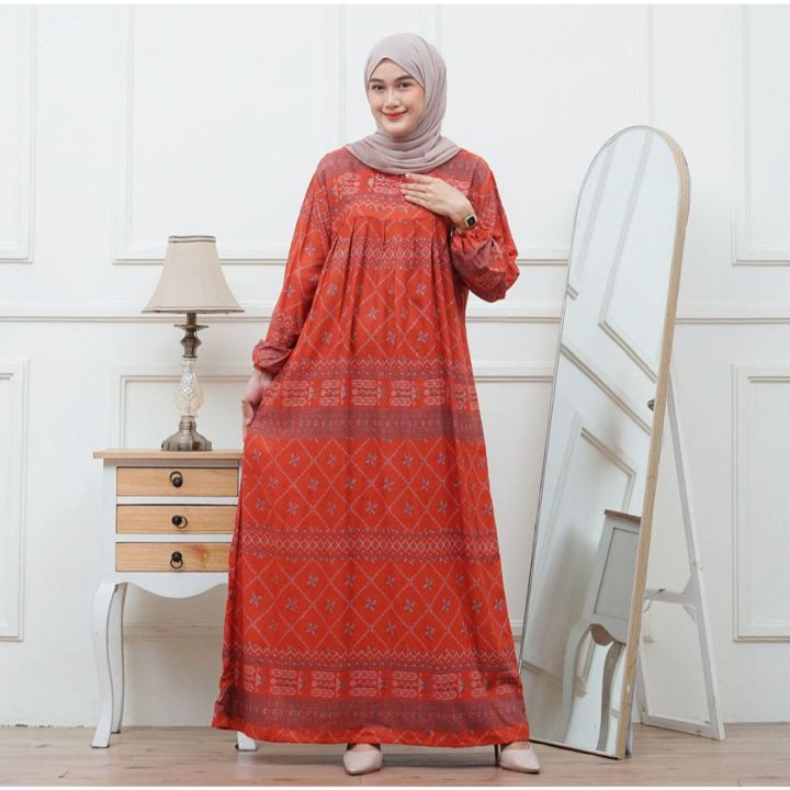 Bintang 5 baru ini dapat dasterr yg panjangnya pas mantap oke untuk akuu Karena biasanya pasti ngatung diatas mata kaki Ini pas coba kagett panjangnya pas mantap sangat nyaman dipakai Pasti repeat order sih