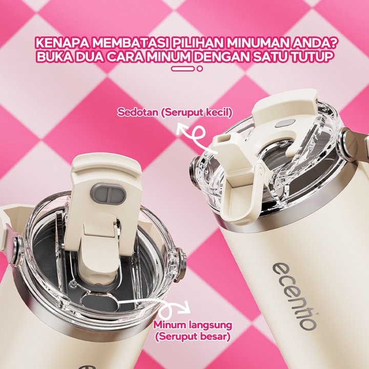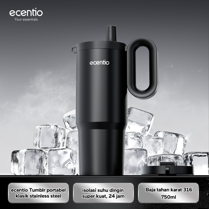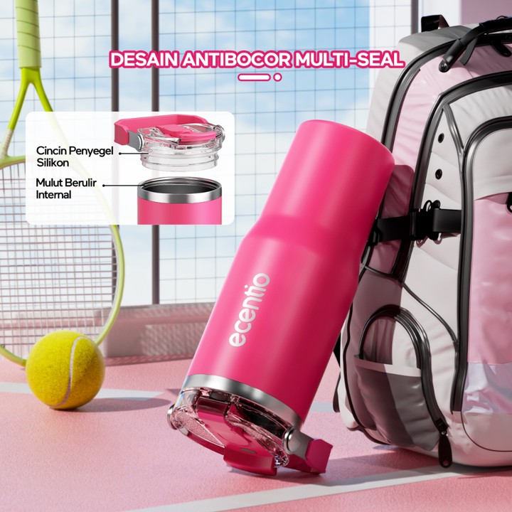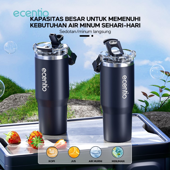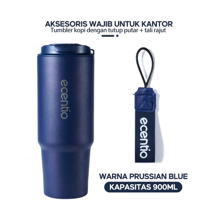 Tumbler premium 900ml dari ecentio dengan konstruksi *double stainless steel* yang menjamin isolasi termal superior, menjaga minuman panas hingga 14 jam dan dingin hingga 24 jam. Dibuat dari material berkualitas tinggi dan didesain estetik, botol ini sangat cocok untuk gaya hidup aktif dan profesional yang peduli lingkungan.