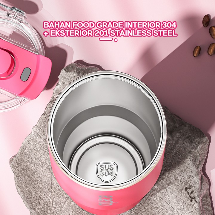 Konstruksi produk ini menonjolkan penggunaan stainless steel 304 food grade pada lapisan dalam, menjamin keamanan dan ketahanan terhadap korosi, sementara lapisan luar menggunakan material yang berbeda untuk estetika dan durabilitas. Fitur *double wall insulation* adalah keunggulan utama yang secara signifikan meningkatkan performa termal, didukung oleh klaim retensi panas hingga 14 jam dan dingin hingga 24 jam.