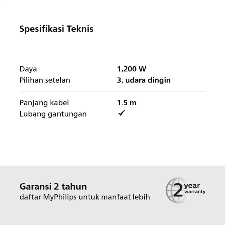 Meskipun tidak mengumandangkan penggunaan bahan premium seperti tembaga murni atau filter ion negatif tingkat lanjut, konstruksi unit ini dibangun dengan standar kualitas yang handal dan tahan lama untuk penggunaan harian. Sertifikasi SNI dan K3L menjamin bahwa produk telah melalui uji keamanan listrik yang ketat, memberikan ketenangan pikiran bagi pengguna mengenai isolasi dan stabilitas tegangan. Desain bodi yang ringkas namun kokoh mencerminkan efisiensi manufaktur Philips dalam menciptakan alat rumah tangga yang tahan lama tanpa mengorbankan estetika modern yang elegan dalam warna hitam.