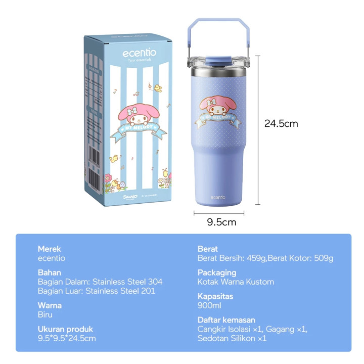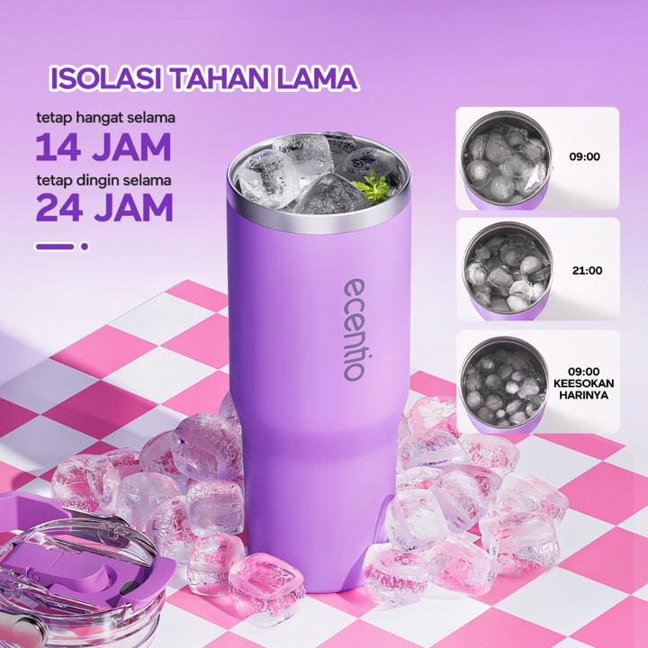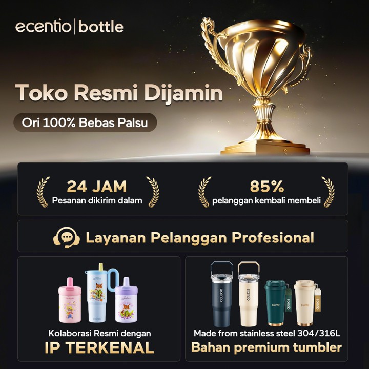 Tumbler premium 900ml dari ecentio ini menawarkan kombinasi estetika modern dan fungsionalitas tinggi, menjamin suhu minuman tetap terjaga hingga 24 jam. Dibuat dari material stainless steel berkualitas, botol ini ideal untuk gaya hidup aktif maupun kebutuhan kantor sehari-hari.