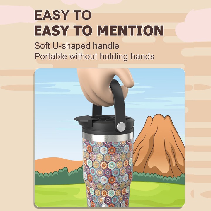 Produk ini dibangun dengan konstruksi yang kokoh menggunakan material stainless steel 304 yang aman (BPA Free) dan tahan lama. Lapisan baja ini menjamin ketahanan terhadap suhu ekstrem serta mencegah pembentukan embun di bagian luar, memberikan pengalaman minum yang nyaman dan higienis. Kualitas bahan yang tebal dan solid menjadi fondasi utama durabilitas produk ini.