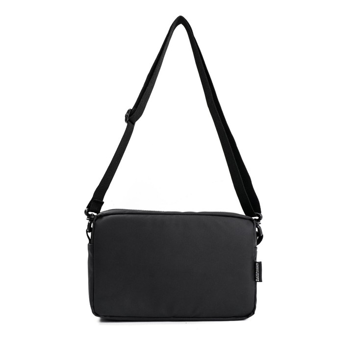 Material utama yang digunakan adalah Bimo Waterproof, sebuah kain sintetis yang memiliki tekstur halus dengan tampilan matte yang elegan namun tetap tahan lama. Konstruksi tas didukung oleh lapisan dalam Torin yang lembut, mencegah goresan pada gadget atau barang berharga lainnya, serta ukuran dimensi 25x7x15 cm yang dirancang ergonomis untuk kenyamanan penggunaan sehari-hari. Meskipun beratnya ringan hanya 300 gram, ketahanan material terhadap air menjadikannya lebih unggul dibandingkan tas kulit sintetis biasa yang mudah rusak jika terkena cairan.